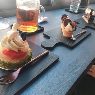 自由が丘駅から歩いて12分程。14時頃に着きました。(緑ヶ丘駅からならすぐです) イートイン利用。 イートインでしか食べられないパフェもあったのですが、今回はケーキ3つ。 テ・オ・ショコラというチョコレートの香りがする紅茶と共に頂きました。 2枚目のケーキがサンセット。グレープフルーツとピスタチオのクリーム、固めでしっかりと甘みのあるスポンジが、上のグレープフルーツの爽やかさと調和して美味しい。 3枚目のケーキがタルトオウカフェ。コーヒー味のケーキって何というか、どれも同じ味のイメージだったのですが、それを覆すような新しい食感と味に感動。中にコーヒーゼリーも入っていました。 4枚目のケーキがアプリコットとダークチョコレートのケーキ。チョコレートにナッツが加わっていてパリパリ感増。断面を見ると結構ふんだんにアプリコットが層になっているのが分かります。どちらも濃厚。 どれも絶品でした。 ケーキは通年同じものではなく期間で変わるような感じなので、お店のホームページやSNSでその時のケーキの情報を見てから行くといいかもしれません。(美味しいのは間違いないです)