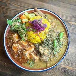 ◆雪が谷大塚駅近くにあるお店◆ Retty初登場店です〜☺︎ こちらのお店様自体、2019年5月オープン だそうでまだ新しいお店様です。 段々都内にもスパイスカレー増えてきて 嬉しいです♬ ランチはスパイスカレーのみで、 お好みでトッピングも入れれる。 今回は2人で行ったので、ルーロー味玉と、 ラム肉麻婆とビーツのポテサラを いい感じに持ってもらい、いただきました! 複雑なスパイスの味と、お野菜いっぱい いただけて、サイコロ状にカットしてある タクアンとか、面白い食材もありで、、 スパイカレーはなんでも有りだから 食べてて面白い!! ルーローと味玉のトッピングがとっても 好みだった❤️ 最後の方ちょっとカレーが塩分強めに感じて きたのですが、まだスパイカレー初心者な もので、、こんな感じなのでしょうかね。? 今年は色んなスパイスカレー修行に行きたい です(^-^) #スパイカレー #雪が谷大塚 #写真が映える