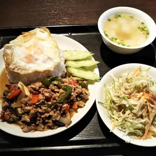創作料理 ダイニングバー 野菜 1000投稿 Sigeharu Tanigawa ®️町田ランチ部会出動(^o^ゞ 町田プレミアム横丁のランチ営業店が『タイランド酒場EN』さんに変わってから初めてお邪魔しました( ☆∀☆) ガパオライス(鶏肉バジル炒め)♪ アイスコーヒー付きで税込900円! 旨辛&ジューシーでマイウー(^^)v こちらのガパオライスは鶏肉なのでヘルシーかなっと思ったら、結構ボリュームが有りお腹一杯です(^^;