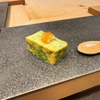恵比寿駅から徒歩1分、ビルの5階にある全12席のカウンター寿司店。修業を積んだ職人が振る舞うお寿司は旬のネタやこだわりの赤酢シャリを使い、一品料理も充実。名物は、あん肝や奈良漬を使ったオリジナル寿司『プリン巻き』のユニークなパフォーマンス。飲み放題付きコース一本のみのシンプルな価格設定で、ビール、シャンパーニュ、日本酒、焼酎、ワインなど内容も本格的。料理に合わせて希少な日本酒も楽しめるうえ、サービスもホスピタリティ抜群。これで1万数千円台の価格は圧倒的な納得感。予約は半年~1年待ちという盛況ぶりで、次の食事が待ち遠しくなる体験が約束されています。