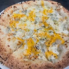 「俺のBakery」特製の生地を使用したピッツァに、半熟卵とトリュフを贅沢にのせた至極の一品、それが「半熟卵とトリュフのビスマルク」。外はパリッと、中はもっちりとした風味豊かな生地が、濃厚なチーズと絡み合い、トリュフの芳醇な香りが食欲をそそります。とろりと流れる半熟卵を絡めれば、さらにコク深い味わいに。ビールやワインとの相性も抜群!ここでしか味わえない贅沢なピッツァをどうぞ♪