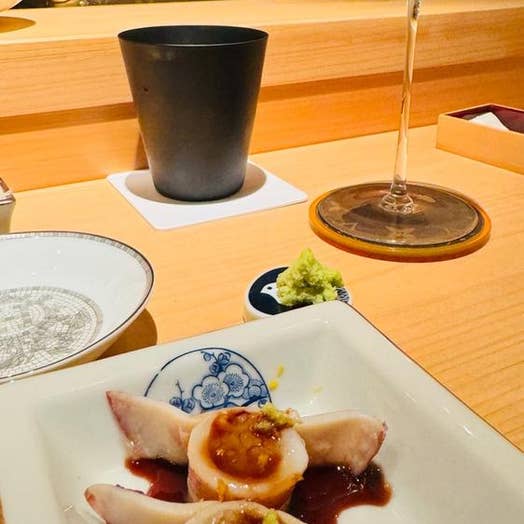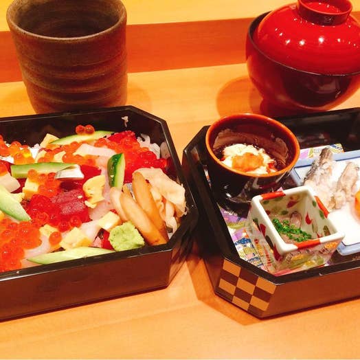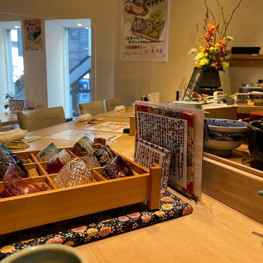 代官山町、八幡通り沿いにあるお寿司屋さん「代官山寿し佐藤」。ランチタイムに気軽に食べられる寿司屋さんはないかな、と探していて見つけたお店。入ってみると、手前がテーブル席、奥がカウンターになっていて、グループ客でも個人客でも使いやすい作りになっている。ランチタイムは握りのセットや丼ものがメインのようだが、ディナータイムはおつまみ系が充実していて、飲みに来るのも良さそうな雰囲気。