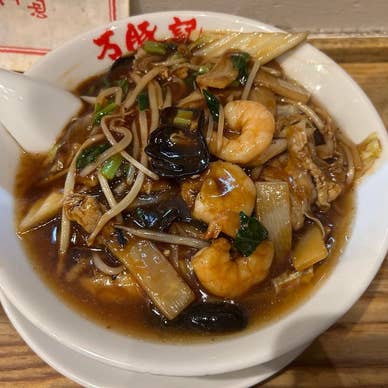 【東京 池尻】広東麺(五目そば)いただきました! 久々のわんつーちー!閉店間際に駆け込みました。お客さんは、カウンターに3名のみ! 三軒茶屋や谷保にある万豚記には出向いたことありますが、池尻大橋は初です! 中華系のスタッフさんばかりで、期待しちゃいます! 待つこと、10分。広東麺到着です!! まずはスープを。濃厚な色合い通りの、濃厚なスープ!!細平麺であり、スープとの相性も良さげです。具材は、しっかりとした五目。海老、きくらげ、もやし、めんま、豚肉、たまねぎなどなど。 いやー、町中華のいいとこ取りな印象でした! ビールともにいただき、至福な感じです!! ごちそうさまでした! また絶対に行きます(すぐに……) #池尻大橋 #中華料理 #ラーメン #Local Guide #Let's Guide #Local Guide Connect