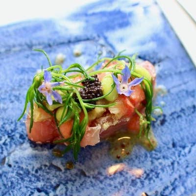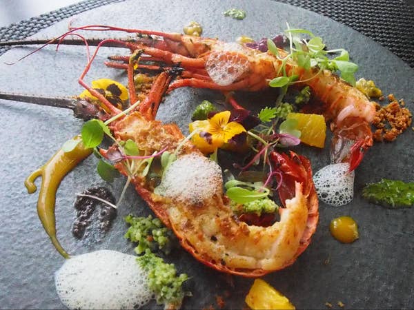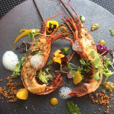 長崎平戸産白イカの炙り焼き、温かいサラダで