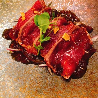 中目黒と祐天寺の間、目黒銀座商店街を奥へと進み 山小屋のような温かい空間の隠れ家バル。 扉を開けると広がるのは、 木の温もりとドライフラワーに包まれた優しい空間 羊肉料理とナチュラルワインを楽しめるとの事で 羊肉は「低糖質・高タンパク」でL-カルニチンも豊富。 美容やダイエットを気にされる方にも 罪悪感なく楽しめるヘルシーミート ワインは南アフリカやチェコと普段なかなか飲まない国の ワインでしたがスパークリングから白、ロゼ、オレンジ、赤とナチュラルワインを堪能させていただきました 一緒に合わせたお料理は店主お薦めの羊料理達 ◎ペコリーノチーズたっぷりのポテサラ ◎羊もも肉たたき ポン酢ジュレ ◎羊肉と牡蠣のタルタル ◎羊肉串(肩、もも、つくね)自家製スパイス ◎ラムチョップ 大葉ジェノベーゼ ◎羊のチーズケーキ 生の羊肉は初めての体験でしたが臭みは無く 赤身の柔らかいお肉で美味しかった 羊が苦手な方にも是非試して欲しい料理でした お料理もワインも美味しく、近くにあったら通いたいお店 ご馳走様でした
