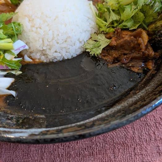 「黒カレー」は、その名の通り真っ黒。器が黒いので最初カレーが入っているのがわかならいほどでした。トロミがあって奥深い味わい。