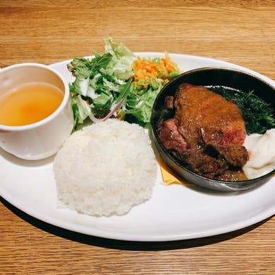 平日の13時過ぎに伺いましたが、席はほぼ埋まっておりカウンターが数席空いてるのみでした。 女性が多めで男性のみは自分のみでしたが、別段居づらいと言うこともなかったです。 肉がメインのメニューになってます、日替わりもあるので肉食べたい!って時には良いと思います。 今回はローストビーフ(ご飯大盛り)を注文しました。 見た目はとても良く美味しそう!って思う盛り付けです。 スープは普通のよくあるコンソメで、サラダのドレッシングは酸味が強めですが尖ってはないです。 ローストビーフは薄く切ってあるので食べやすいですが、肉の味は少し感じにくいかもしれません。 ご飯の上に6〜7枚くらい載せられてるのでしっかりローストビーフを食べた気がします。 ソースは赤ワインのソースで風味がしっかり感じられます。 上に乗っている卵は塩味がしっかりついているのでアクセントなってローストビーフやご飯と一緒に食べると美味しいです。 男性には大盛りでも少し足りないかもしれませんが、女性には普通盛りでもその後甘いものなどを食べるならちょうど良いと思います。 次はハラミステーキを食べてみようと思います。 #ローストビーフ #渋谷 #ランチ