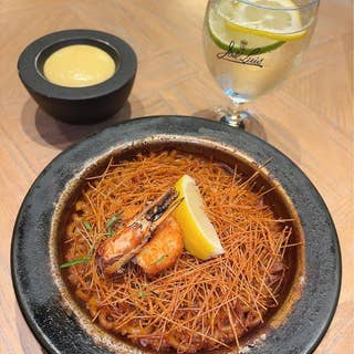 渋谷駅直結、スクランブルスクエアの13階にあるお店 少し高級感ある雰囲気だけど、 オープンな入り口でこういうお店にしては入りやすいし、 おひとり様が沢山食べているのがみえたから ホントに入りやすかった スタッフさんはホテルのレストラン並みの身だしなみで スーツにネクタイ、とても親切な接客をしてくださりました。 サンダルのおばさんが来てしまい 申し訳ありません(笑) でも、まわりもわりとラフなお客様や 外国の方が多く そこまで堅苦しさは感じることなく 高級感を手軽に楽しめました。 ~サングリア 柑橘ミックス ~LUNCH3 ◇季節のポタージュ ◇季節野菜と半熟玉子のシーザーサラダ と メインが3種類の中から選べる ランチのコースを頂きました。 サングリアは私の大好きなレモンとライムが入ってて すごくサッパリしていて飲みやすく美味しかったです。 季節のスープは 冷製グリーンアスパラガス アスパラガスの食感も少し残っているし アーモンドスライスがよい食感 シーザーサラダは 運ばれてきただけで チーズの香りが高く、いい気分に 一口食べてみると 想像していた味とは だいぶ違ってちょっとびっくり かりかりのかぼちゃと ほっくりしたさつまいもで 全体的に甘い しっかり旨みがあるベーコンが味を引き締めて美味しかった ◇選べるメインは 濃厚海老出汁のフィデワをチョイス フィデアは パスタのパエリア 今まで食べたフィデアの中で一番美味しかった というのも パスタが二種類 上の方のパスタは 細くてカリカリ 下には もちもちなくるりんとしたパスタが入ってて 二種類の食感が楽しめる レモンも もちろん合うし アイオリソースがめっちゃ美味しかった もともとアイオリソースが大好きなのですが ふわっとして 他のアイオリソースとは違う このソースだけでも買って帰りたいくらい 気に入りました とっても贅沢な気分で大満足なランチでした