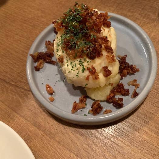 サクッと軽い衣にふんわり白身魚。香ばしいタプナードがじわっと絡む!