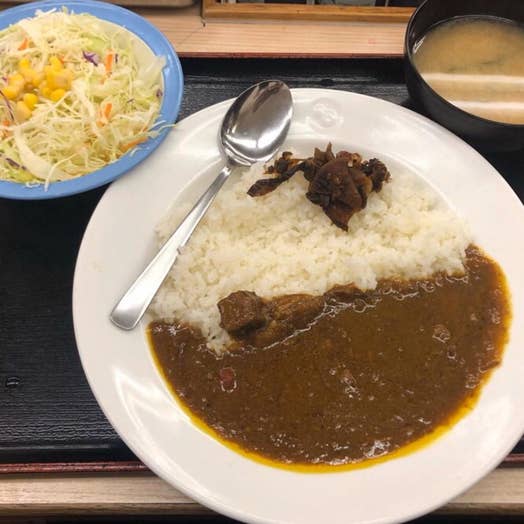セット内容は、牛丼小盛、みそ汁、生卵。更にW玉子にしようと、プラスαで半熟玉子トッピング。滞在時間10分の時短食!素晴らしいです(✿^‿^)