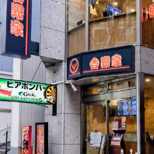 東京都渋谷区渋谷。ご存知、牛丼チェーンの吉野家の渋谷宮益坂店です。牛丼業界のパイオニアである吉野家は、1899年(明治32年)に東京日本橋で創業。最寄りは、現在進行系で大きく変貌を続けている街、ビッグターミナル渋谷駅 φ(..)