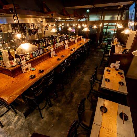 和モダンな大人の空間。旬な魚の原始焼きや新鮮なお刺身を揃えた隠れ家居酒屋