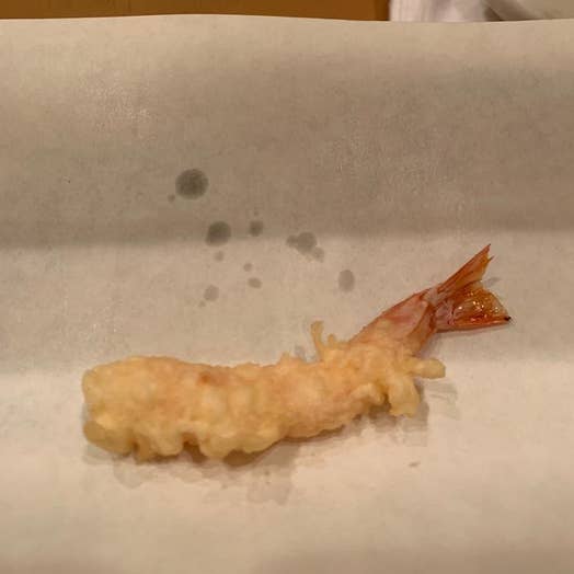大きくはありませんが海老が二尾も入っています。なす、大葉、カボチャを食べていると、下から白身魚が二尾も出てきました。これはやっぱりキスかな?