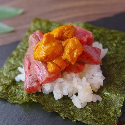 霜降り肉とたっぷり雲丹の手巻き