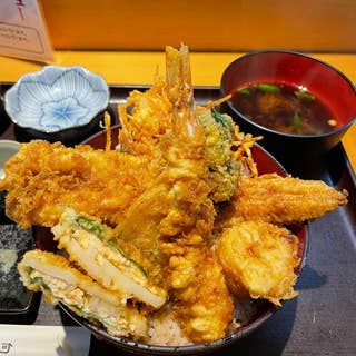 人気の天丼は豪快盛り。食べ応え抜群で色んな具材が楽しめる和食店