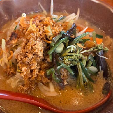 今日は寒かったですね こんな日は汁物が恋しい〜 田所商店に来ました。 午後2時だと言うのに、8組待ち! みんなも考えることは同じかな? 信州味噌の野菜らーめんをチョイス♪ 辛すぎず、甘くなく バランスの取れたお味噌 濃厚で旨し‼️ 麺も縮れていて、このスープによく絡む〜 具がいいですね! 野菜たっぷり! 信州味噌には、トッピングで山菜がデフォでつきます! 味噌に合うのかと思いきや… まあまあ、合いました(笑) 久しぶりに来たけど、寒くなってきたらまた来たくなるなぁ! 今回も美味しくいただきました ごちそうさまでした(๑>◡<๑)