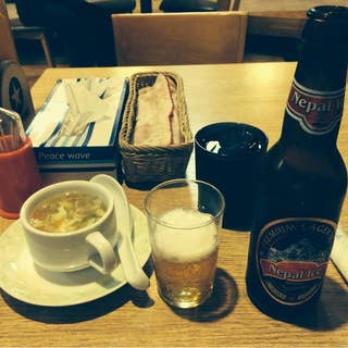 会社帰りに駅へつくとインド人が相変わらずチラシを配っていた。私も、会社でインド人に好かれているのだから何処でもいつしよかなぁ?とか思ってるから対応が不思議とでかくなる。いかんいかんと思いながら、なますて!と言いながら手を合わせお辞儀する。これが出来れば大抵認められる。今日はインドのカレーを要求。確かマトンだったと思う。食べた感じ美味しい。中に肉が入っていたので豚肉だと思ってたら羊かもしれないと思い聞いてみたらあたり、初めてこんな形で食べるとは?でも、不味くはなかったので美味しく感触できた。辛さはホット、もっと辛くても良かったのだけど、室温が高かったので汗ダラダラかきたくさんなかったからベリーホットはやめた。頼んだのはカレーセットとネパールビール。セットはスープ、サラダ、飲み物がつく。なんもでかく小ライスも貰ったのでなんが半分しか食べられず持ち帰る。お腹いっぱいになりご馳走様!ビールのつまみはえびせんかなぁ?海老の風味がしたのでそう言ったが、写真撮る前にバリバリ食べビールで飲み干す。私はインドのせんべい嫌いではない。
