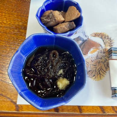 小田原市の根府川にある磯料理店。3連休の中日にに友人6人と予約して訪問。 車は漁港になっていて駐車できます。 客間は年季の入った立てましたのですが、窓が大きく眺望が素晴らしい。かなりくつろげました。 コースは通しにもずくと鰹の煮物。 2品目は豪快な刺身の盛り合わせ。写真は3人前です。 刺身はデカく、活き造りのヒラメは30分程度生きてました。 3品目は追加でサザエの壺焼き。 4品目は金目鯛のしゃぶしゃぶは出汁が少し、強めでめちゃくちゃうまい! 店の方がいただき方を教えてくれます。終わりにはオジヤこれも美味しくいただきました。デザートも付いてます。 腹いっぱい食べて飲んで1人1万円弱。コスパも良く、店の方も親切で素晴らしい店でした♪