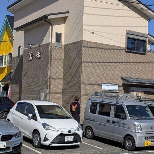 新店ですね。駐車場が店の横、入って直ぐの所に2台ありますね。店の窓に番号、車輪止めに店名入ってます。