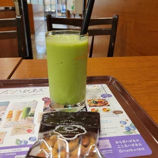 2021年06月16日(水) 所用で保土ヶ谷駅まで出たので、 帰りにカフェ・ド・クリエに 吸い込まれてしまいました。 本日発売の 「 自家製珈琲ゼリーパルフェ ~ チョコバナナ 」 ¥ 470.- を食べました。 昨日までの自家製珈琲ゼリーパルフェは 「 キャラメルバナナ 」だったので マイナーチェンジしていました。 美味しかったです。 やっぱり夏は珈琲ゼリーですね! 2枚目の写真は2021年06月12日(土)に 入った時に飲んだ 「 小松菜&バナナのソイスムージー 」 ¥ 460.-です。 こちらも大変美味しかったです。 1度行くとクセになっちゃいますね。 きっとまた行くと思います。