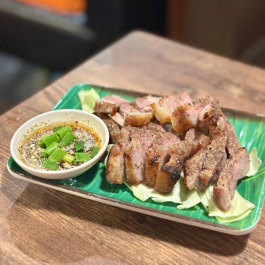 一軒目に振られ尊敬するレビュアーさんの投稿を参考に第二候補のパクチリさんに開店一番乗りで来店,グリーンカレーラーメンと迷いましたが大好きなパクチーまぜそば1100円に平日ランチタイム小ライスサービスで注文しました,