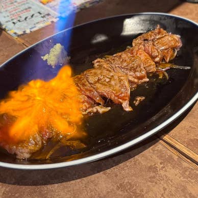 川崎駅から徒歩3分ほど、雑居ビルの地下にある馬肉専門居酒屋。 店内は50席ほどあるようでかなり席数は多い。 また全席喫煙可というのが川崎っぽい。 今回は一番人気の飲み放題付きコース「厳選馬刺し馬ハラミタコスのエイジョイコース(5,000円)」を注文。 飲み放題はソラチビール、黒ラベルの2種類のビールをはじめ充実のラインナップだ。 料理メニューは下記。 ■桜肉のカルパッチョ ■クラッシックシーザーサラダ ■厳選馬刺し5点盛り(おひとり様おひとつずつ) ■大人気!馬カルビの炙り ■馬ハラミステーキ&グリルチキンの旨タコス ■さめのフィッシュ&チップス~ディルタルタルを添えて ■ほのかにかおる、磯の香り、ゼッポリーニ ■馬エベレスト飯 まず全体の感想としてはボリュームがとても多い! そしてどれもが非常に美味しい。 1人1皿の馬刺しは味わいの違う5種類の部位が楽しめるし、馬ハラミステーキは馬刺しとはまた違う馬肉の味わいがあってとても面白い。 その他もお酒、特にビールに合いそうなメニューが多く、飲み過ぎてしまうこと間違いなしだ。 スタッフさんは外国人らしき人が多かったが、みんなフレンドリーで感じの良い接客。 ワイワイ賑やかな店で若干会話はしにくいが、この値段でこのクオリティのコースであれば大満足。 普段川崎に行く機会はほとんどないが、また次回行く際にはぜひ立ち寄りたいと思える店であった。