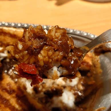 ダブルカツカレー(大):税込1,450円 ロースカツとチキンカツが同時に楽しめるメニューです。 銀色の器に盛られたカレーは、濃厚で深みのあるルーがたっぷりとご飯にかかっていて、その上にはサクサクの揚げたてカツが豪快に並んでいます。 さらに千切りキャベツも添えられているのが、ゴーゴーカレーならではのスタイルです。 ロースカツは、衣のサクッとした食感の中から、しっかりとした肉の旨みが広がりました。チキンカツは、ロースとはまた違った軽やかな食感と柔らかさが楽しめ、あっさりとした肉質が良かったです。 ルーは黒みがかった濃厚タイプで、粘度が高く、ご飯やカツにしっかり絡みつきます。 ほんのりとした苦みとコク、スパイス感が合わさっていて美味しかったです。
