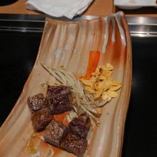 昨夜旦那様とSOGOの美術館へ平山郁夫展を観に行き帰りに伺いました。オープンkitchenで綺麗に焼き上げて下さり熱々をテーブルの鉄板に 80グラム4000円と我が家には相応しくない高級和牛も頂きました。(^^ゞ盆暮れがイッキに来てしまいました((o(^∇^)o))