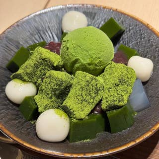 またまた和スイーツ。(笑) おばあちゃんとママと3人でティータイムです♪ 日曜だったので、列に並んで30分ほど待ちました。 小さめの店内にはテーブル席が少しと、造花の飾られたカウンター席がいくつか有ります。 私が注文したのは、濃い茶パフェとほうじ茶ラテのセット。パフェには抹茶ソースをかけて食べます。 抹茶アイスだけでなく、小豆アイスも乗っかってるのが嬉しかったです♪ 余計な物が入っていない、王道の抹茶パフェという感じでした。 そしてパフェの横に添えられているのは、お茶の佃煮!!!何それ!! お茶の葉っぱを佃煮にした物で、塩辛いだけでなく、お茶の爽やかさをかすかに感じることができます。 甘いパフェのお供には最適(^_^) ドリンクのほうじ茶ミルクは、甘みがほとんどないので、甘すぎるものが苦手な方にはとってもオススメ。