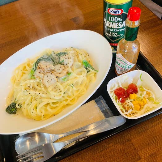 メニューはナポリタンなどのスパゲティー、ホットサンド、ピザのセットが有ります。