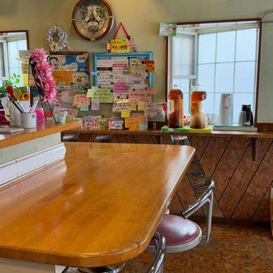 【あの番組にも登場したまぐろユッケ丼】 勢いのある店主が印象的な、お魚が充実した小さな食堂。 ちょっとメルヘンなテイストに昭和っぽさを感じつつ、メニューは充実。 手書きのポップが並ぶ壁がメニューとのこと。 ちょっと見にくい…けど定食など種類豊富で、どれにするか迷います。 迷った末に選んだのは、推し強めなポップメニュー。 まぐろユッケどんぶりと手作りメンチカツ(1900円)。 まずはメインのまぐろユッケどんぶり。 味付きゴマ油をまとった新鮮なマグロがたっぷり盛られた丼。 見えなくなるくらい胡麻がまぶされ、コクある黄身と絡めて。 生姜も軽く効いてる? なんだか分からないソースもかかっているようだけど… 独特の不思議な味わいで、ついガツガツと食べてしまう美味しさ。 後から知ったけど、孤独のグルメでもゴローさん食べてたんですってね。 そして、セットで注文したメンチカツ。 ザクザクジューシーで、しっかり詰まっているうえに溢れる肉汁がすごい。 そのまま食べても甘さを感じる美味しさ。 もちろん、王道のウスターソースをかけて味に深みを加速! 人気というのも納得の美味しさです。 大きな器の味噌汁は、出汁がしっかり効いたしじみの味噌汁。 小鉢も合わせて、定食としてもいい感じ。 ごちそうさまでした!