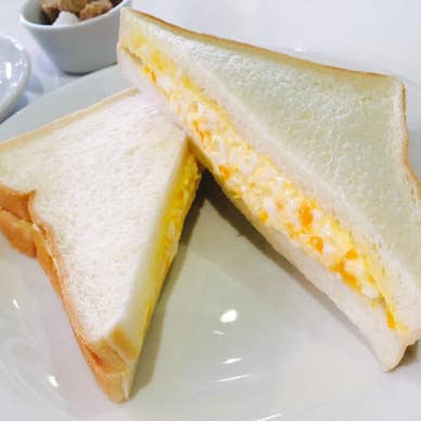 マヨネーズたっぷりのたまごサンド280円。 豆から挽いてくれるブレンドコーヒー300円。