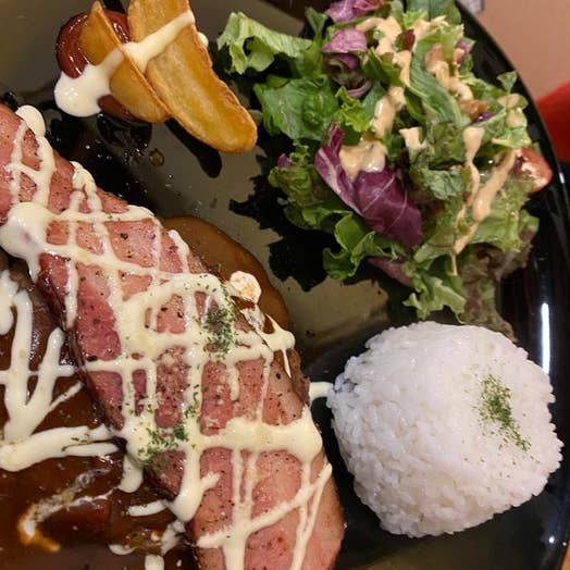 【ハンバーグ】は滑らかな挽肉ですが肉肉しく濃厚だそうです。ベーコンは中々無いほど美味しかったみたいです。