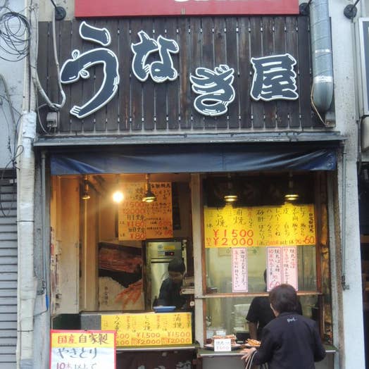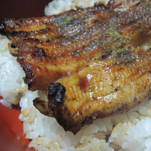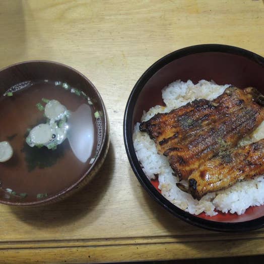 瓶ビール2、お新香、肝焼き2、白焼、上丼