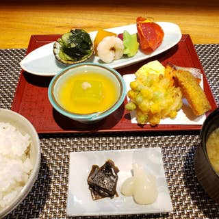 富山で初のネイルサロンに行った帰りに寄りました。 引越しをすると、ヘアサロン、ネイルサロン、まつ毛やらなんやらかんやら、一から探すのが本当に大変。 ホットペッパービューティーで探すも、ぜんぜん件数がない!皆さんどうやって探してるのでしょうか…。教えてください|д・) ということで(どうゆうことだ)ランチに。 なんとタイミングが合い富山の投稿をいつも参考にさせていただいている、kanayamaさんとご一緒することに。少し緊張w 地鉄の電気ビル駅から徒歩1分のお店。 まだ新しいとのことで、綺麗で落ち着いた店内。 2階の個室へ通していただきました。 1階には素敵なカウンター席が…夜なんかはカウンターが良いかも。 おまかせランチ (私だけビール) ◆とうもろこしの茶碗蒸し ◆お造り フクラギ、鯵 フクラギはブリの子供だそう。関東だとイナダになりますよね。 お刺身おいし♪ そして運ばれてきた御膳がきれい〜♡ 奥の青いお皿は、7月ということで天の川をイメージしたとのこと。すてきやん。 夏らしく涼しげ、さっぱりだけど丁寧に調理してある( ˙꒳˙ ) 手前のお皿は、 かき揚げ イワシのフライ 焼きサーモン 卵焼き あと、山菜(忘れた)の煮びたし 一品一品がとても美味しく、いつもお米は少なめにしてもらっても残しがちなのにペロリと完食してしまいました( ´艸`) 素敵なお店を紹介してくれてありがとうございました〜!