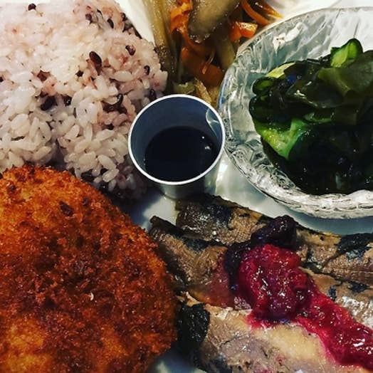 ご飯が二つの塔のように並びます。一つは胡麻を散らしていて、これが浄土山の花崗岩を表します。今朝方、雲間から眺めたのが浄土山でした。