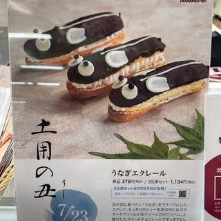 イオン金沢のぶどうの森(今春「ぶどうの木」から「ぶどうの森」に店舗名を改名)の前を通った際に、土用の丑の日限定の"うなぎエクレール"を見かけて衝動買い。だってこんなかわいいのを見つけたら買わない訳にはいかないでしょう。味も生クリームとカスタードクリームのWクリームがたっぷり入っていて美味しかったです。