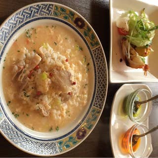 かほく市の旧七塚町にあるイタリアンレストラン。国道沿いにある店主さんの似顔絵入りの大きな看板が目印のお店です。金沢の人には、近江町市場近くの「ポルチェリーノ」の本店と言った方が通じるかもしれませんね。 今回は、かほく市で開催中のイベント「あったか雑炊・鍋まつり」のメニューをいただきに行って来ました。 カチェーナさんのイベント限定メニューは、西洋風雑炊の「ランプレドット フィオレンティーナ」。さすが金沢にランプレドットパニーニの専門店を出すだけあって、ランプレドット(イタリアのモツ煮込)が美味しいですね。柔らかい食感と、臭みの無いモツの旨味が絶品でした。