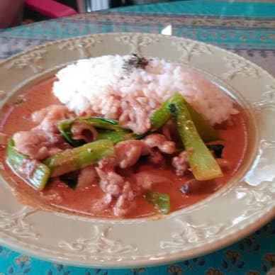 【ランチセット】 メイン料理‥グリーンカレー サラダ ドリンク‥アイスティー 前から行きたいと思っていたお店♪ グリーンカレーが好きなので迷わず注文^ - ^ とても美味しかったです(*´∇`*) 他の料理も食べてみたいです^ - ^