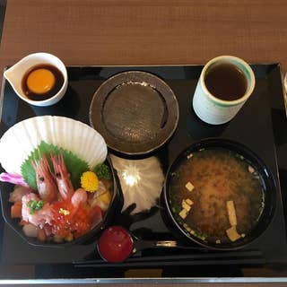 落ち着いた雰囲気のお店。 丼はお醤油と黄身醤油が選べる。 エビもお魚も美味しい