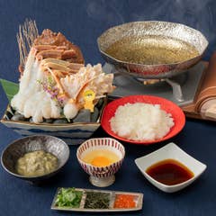 福井が誇る越前がに料理を食べ尽くす為に開発した人気No1御膳!650g前後の「三国港越前がに」を1杯丸ごと使用した蟹フルコース御膳になります。茹蟹、蟹刺し、焼蟹、蟹味噌、蟹しゃぶの5種類の越前がに料理でご提供。ほぐした蟹身や蟹味噌を白米の上に乗せれば蟹飯として楽しむことが出来ます。さらに蟹しゃぶの出汁をかければ特製蟹茶漬けとしてもお召しあがりいただけます。コースよりも気軽に楽しめる提供Styleでディナータイムで特に人気です。