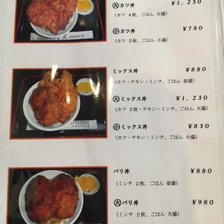 ミックス丼大です。 カツにソースがかかったソースカツ丼です。 ミックスなのでカツ2枚とチキンカツ、ミンチカツが乗っています。 クドいですが、ソースカツ丼美味い。 メンチがジューシーで好みです。 たまに食べるくらいがちょうど良いです。 テイクアウトもあります #ソースカツ丼 #ヨーロッパ軒 #丸岡 #駐車場あり