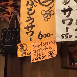 生ぶどうサワーを頼んだら、ぶどうジュースではなく、粒入りでした\(^ω^)/ この時期限定だそうです。 皮ごと頂けるので、美味しく頂きました! 食事は、優しい味わいで、量が多いです。 鳥モツも、甘たるくなく、美味しかったです。 石和温泉は、駅まわりは旅館が多く、さらしなさんはちょっと離れたところにあります。