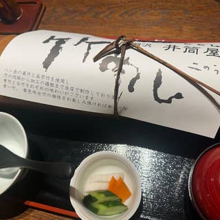 長坂方面への旅の締めくくり、最終日にランチで伺いました。 朝食をたっぷりいただいた関係で、遅めのランチにしました。 散歩や買い物ではカロリー消費されず、お店への到着は13時でしたが、お腹は余り空いてません。 小どんぶりがあるのを調べていたので、こちらを選択しました。 駐車場に車を入れ、暖簾を潜ると鰻蒲焼の独特の匂いが脳を刺激し、気のせいか空腹感を感じました。 予約なしで伺いましたが、休日は予約必須の様です。 三和土で靴を脱ぎ、座敷に上がりますが、全て椅子席の作りです。私達は庭に面した窓際席に案内いただき、池がよく見えました。 こちらの鰻は「熟成鰻」と銘打って、一手間加えてるとのことです。 私は熟成重箱、家内は熟成小どんぶりをお願いしました。尚、吸い物は肝吸いに変更しました。 重箱は朱色の横長の変型お重ですが、昔ながらのお重箱に変更も可能で、私はそちらにしました。 家内の小どんぶりは、どんぶり自体の大きさは普通ですが、鰻の大きさは約半分でした。 蒲焼のたれは、濃いめで甘さより、醤油が勝ってるたれです。なる程、私達は使いませんが、出汁を掛けていただくにはこの方が良いのでしょうか。 香の物はべったら、胡瓜、人参の糠漬けでした。 平日も予約をされて来るお客様が多いと感じました。 それと、孟宗竹の器に守られた竹盛りご人気の様です。お腹に余裕があれば白焼も食べて見たかったです。尚、お品書きの説明を読んでも、熟成鰻の一手間は具体的には何なのか良く分かりませんでした。 ご馳走様でした。