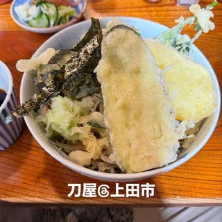 出張中のランチに同僚3人と訪問しました。 お店の前にベンチがあり、そこに並んで待つスタイルです(名前を書いたりはしませんでした)。 このお店は、真田そばとくるみそばが有名みたいです。また、田舎蕎麦のように腰の強く太目の蕎麦と量の多さが特徴です。 小で通常の1人前、中で2人前、普通で3人前のボリュームだと店員さんが説明していました。 天ざるもあるのですが、海老が2本と野菜天6点ということなので、たぬきそばにしました。 たぬきそばは、天かす以外に野菜天が4点乗っており、麺の量はなぜか小・普通・特大からしか選べません。 中サイズが良かったのですが、小サイズで注文し、15分くらいで着丼しましま。 天ぷらの衣は薄めて野菜の美味しい食感が残ってます。 お蕎麦は噂通り、しっかりとした噛みごたえと喉越しがしっかりありますね。 汁は単体で飲むとカエシの醤油に対して甘さが勝っているようですが、そばをつけてみると丁度良いバランスでした。 量的にも天ぷらを含めて、丁度良かったです。 ご馳走様でした。