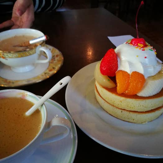 混んでいた為か、提供に15分ほどかかりましたが、ワンプレートで供されたモーニングはボリュームたっぷり!厚切りトースト2枚に長い厚切りベーコン、ポテトフライに新鮮野菜も結構ありました。