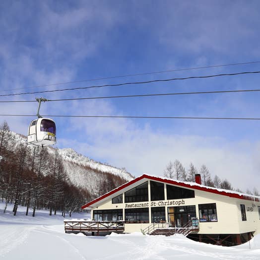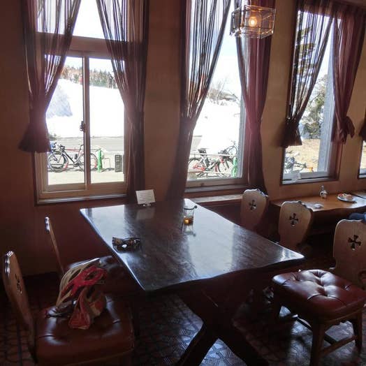 渋峠のロマンスリフトに乗って横手山山頂へ行くと、眺めがいいカフェがあるので行ってみた。