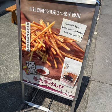 信州善光寺の参道にあるお店。大学芋や芋けんぴを販売してます。食べ歩き用の大学芋(400円)を購入。