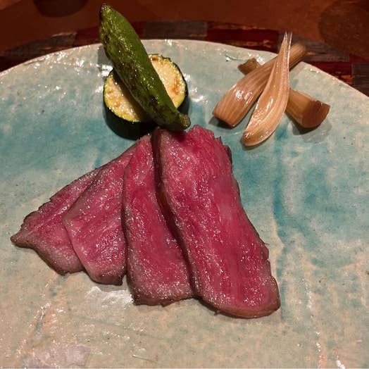 鴨のローストや、オレンジスライスの上に置かれた焼き鮭、お刺身…どれも美味しい❗️