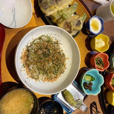 このお店ではないのですが、孤独のグルメでわさび丼が紹介されて以来、食べてみたくてついわさび定食を頼みました。 お店のおすすめはアマゴだと思うのでアマゴの刺身も頼みました。 わさび定食は、鰹節がのったごはんに醤油をかけて、自分ですったわさびをのせて食べます。わさびは目の細かいおろし金ですった方がより辛味があるそうですが、すりたては本当に辛いです。 でも、わさびの辛み成分が揮発して鼻に抜けなければほとんどほとんど絡みを感じないのでごはんや、いろいろ着いてくるおかずに包み込むように食べると美味しく食べられます。わさびを一本食べることができました。 わさび定食には、あまごの天ぷら、野菜の天ぷら、小鉢も4つほとついてきて大変お得です。 アマゴの刺身は、とろサーモンのように美味しいです。川魚の刺身は珍しい思います。さらにアマゴのイクラもついていてこれも絶品でした。 #アマゴ #刺身 #コスパ